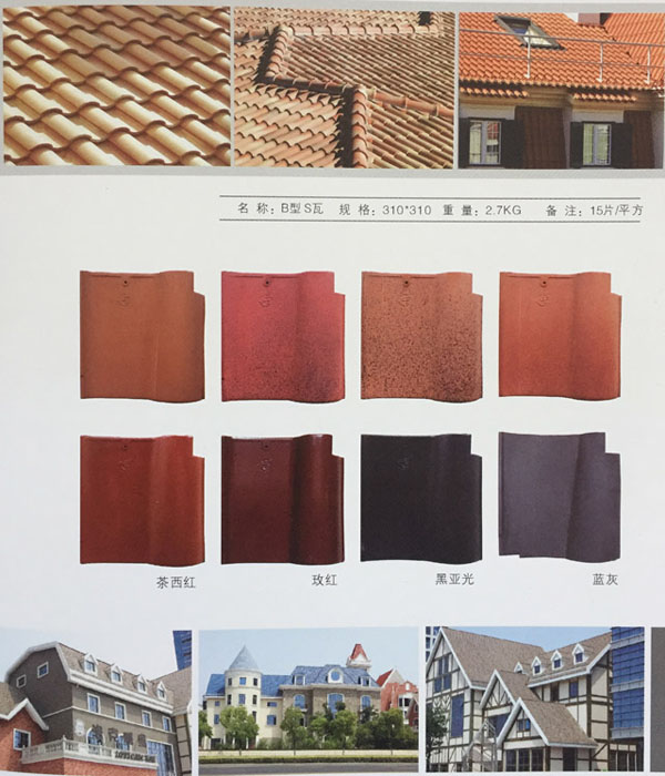 S瓦顏色:磚紅色 咖啡色 米黃色 青灰色 寶藍(lán)色等